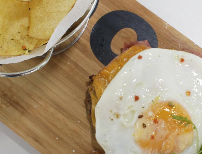 Barbacoa, Queso Cheddar, Jamón York, Jalapeños y Huevo Frito.